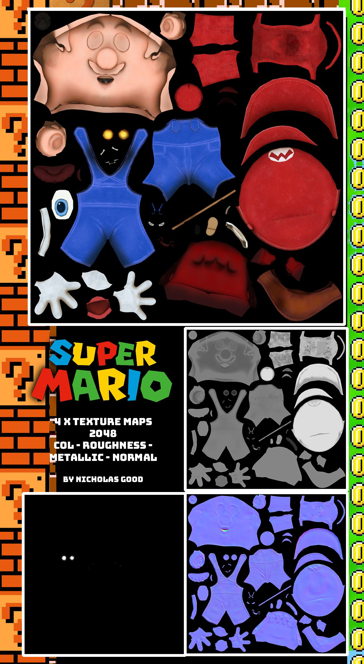 Super Mario! I made this as a test using Substance Painter and Unity. Made with Maya, ZBrush, Substance Painter and Unity - exported to SKETCHFAB below: